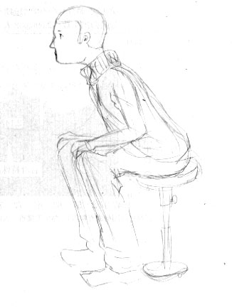 前屈みに椅子に座るひと。